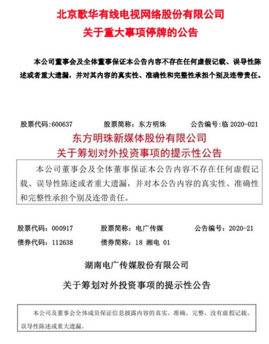 随后,网络整合审计评估工作启动。5月中旬,23家广电网络确定“全国一网”法律尽职调查机构。5月27日,歌华有线首先发布确认参与组建“全国一网”股份公司并宣布停牌,28日,东方明珠、贵广网络、陕西广电网络、吉视传媒等10家广电系上市企业也纷纷发布公告宣布将以现金出资的方式确认参与出资组建“全国一网”股份公司,也预示着广电业内期待许久的全国性股份公司即将到来,加上广电发展5G网络契机,全国一网步入实质性阶段。