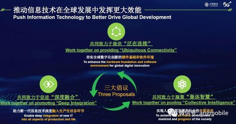 孤举者难起,众行者易趋。为了推动信息技术在全球发展中发挥更大效能,中国移动提出以下3点倡议。一是共同致力于提供“泛在连接”,加快5G等新型信息基础设施建设,推动标准统一、互联互通、资源统筹、合理分配,共同夯实全球数字化创新的硬件基础和软件环境。二是共同致力于促进“深度融合”,共同探索信息技术赋能经济社会转型的发展路径,共创数字化应用产业生态,培育新产品、新服务、新业态,共建行业标准、共研创新技术、共推应用示范,助力新一代信息技术深度融入生产生活各环节。三是共同致力于凝聚“集体智慧”,面向长远,共同携手推进下一代信息通信基础理论与核心技术创新突破,构建万物互联、空天一体、人机交互的数字社会网络空间,充分汇聚提炼社会全量数据的集体智慧,实现人的全面发展和社会的全面进步。