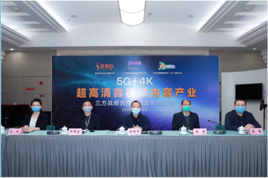 3月10日,新媒股份与沃音乐、4K花园举行了5G+4K超高清音视频内容产业三方战略合作云签约仪式,将充分整合各方软硬件及资源等优势,在5G音视频产业、高品质音视频的内容、5G+4K超高清音视频直播、智慧家庭生活场景等领域建立战略合作伙伴关系。