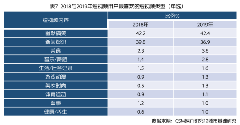 2 、幽默搞笑和新闻资讯是短视频用户最喜欢收看的短视频内容