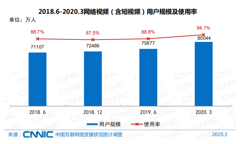 CNNIC今年4月发布的第45次《中国互联网络发展状况统计报告》显示,截至2020年3月,我国网络视频(含短视频)用户规模达8.50亿,其中短视频用户规模7.73亿,占网民整体的85.6%。短视频市场巨大,未来还将继续作为一种基本的内容形态,对爱优腾芒来说,自然不会放弃这一市场。2020年以来,几大平台的短视频布局正在加大。
