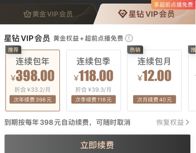 虽然视频网站都具备了相当的会员数量,但一方面是平台长期亏损,一方面是用户红利见顶,在此背景下,提升用户ARPU值是自然的选择。进入2020年,视频网站提升ARPU值的具体措施主要体现在超前点播的进一步推广和会员体系的建设方面。