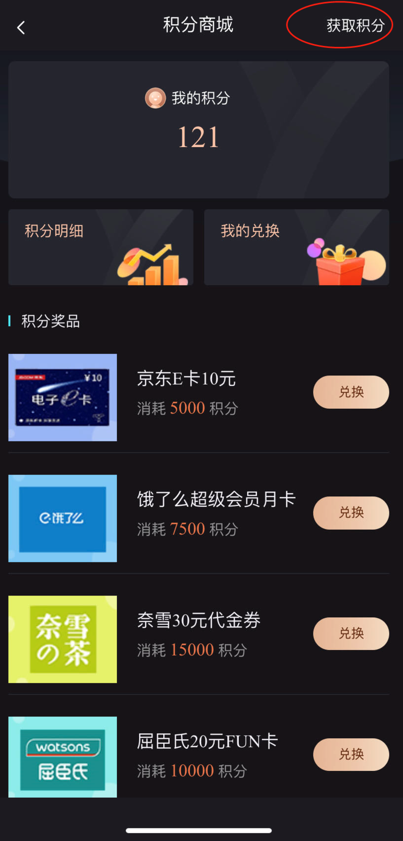 第三步选择你想要的礼品使用积分兑换