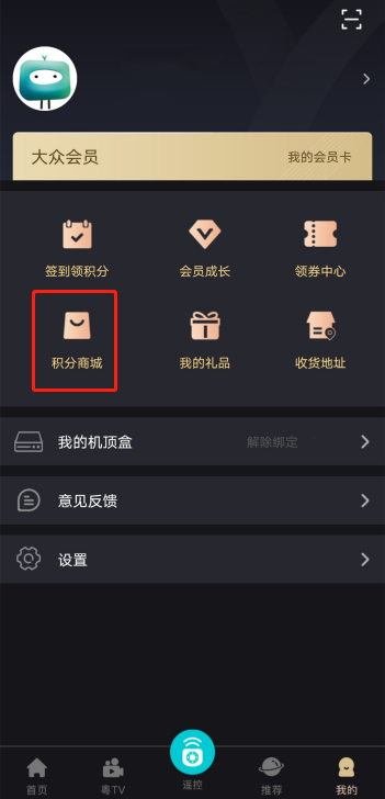 第二步点击【我的】-【积分商城】进入商城页面