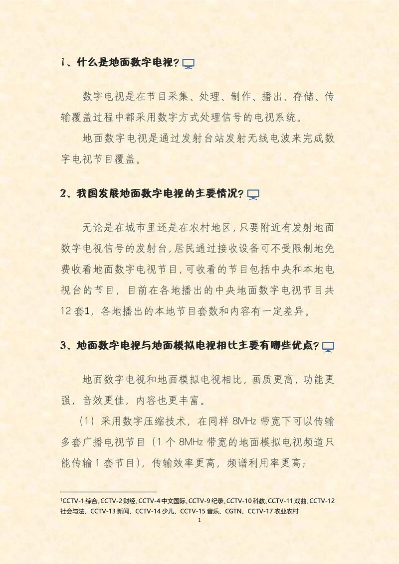 在以习近平同志为核心的党中央坚强领导下,广播电视工作坚持以人民为中心,国家出台一系列政策鼓励并支持发展有线电视、直播卫星数字化入户覆盖,将地面数字电视纳入国家基本公共文化服务体系,各项事业快速发展,以数字化为主要特征的传输覆盖体系全面建成,我国已经成为广播电视数字化发展大国。截至目前,全国有线电视和直播卫星用户分别达到2.1亿户和1.3亿户,5000余座发射台上万部数字电视发射机覆盖广大城乡地区,通过多渠道传输覆盖系统,观众打开电视就能收看到数字电视节目。