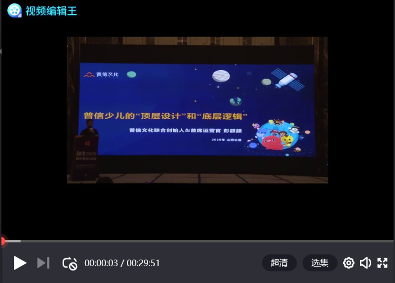 【流媒体网】消息:2020年6月17-18日,由流媒体网主办的第19届论道“融智2020——视听激荡与变革”暨中国IPTV/OTT智能视听产业高峰论坛在太原举行。北京普信文化传媒有限公司联合创始人&COO彭颉颉进行了主题为《普信少儿的“顶层设计”和“底层逻辑”》的演讲。