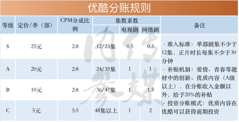 对此,传媒内参-传媒独家梳理了“爱优腾”最新分账规则,同时还从作品题材、创作体量、口碑数据、收益变化等多方面对2020年分账剧的发展特点与趋势进行分析。