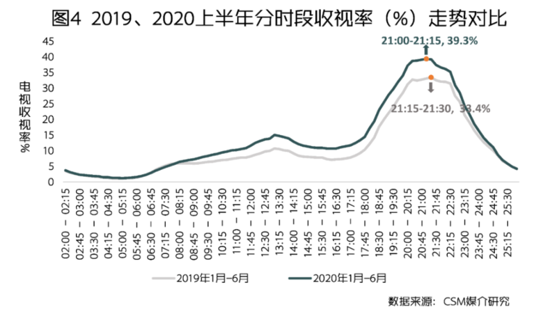 观众特征数据显示,人均收视量的增长,发生于所有年龄段和不同性别人群中(图3)。电视收视量的增长,在全天各个时间段都有发生(图4)。