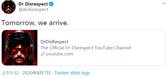 Dr Disrespect重返流媒体 将在YouTube、Facebook和官网直播