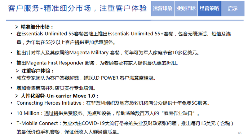 持续秉承用户至上策略,大力发展客户服务。持续推出系列优化策略使得T-Mobile用户数量不断攀升,引领2019年客户满意度。