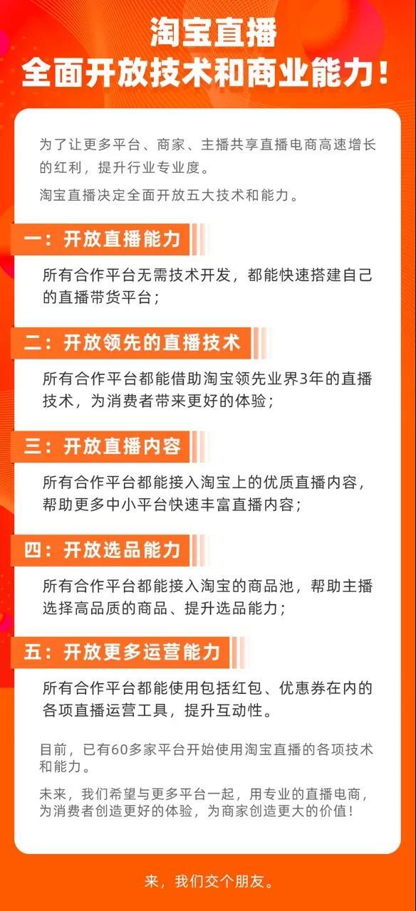 淘宝直播的全面开放,对行业来说是一剂强心针。目前淘宝直播无论是技术、生态还是商业能力,均在直播电商商业大幅领先。而更多中小平台能借助淘宝直播的开放,“一夜之间”0成本搭建比抖音更好的直播带货平台,则能让商家、主播有更多选择,避免因抖音电商的“赌局”而无所适从。