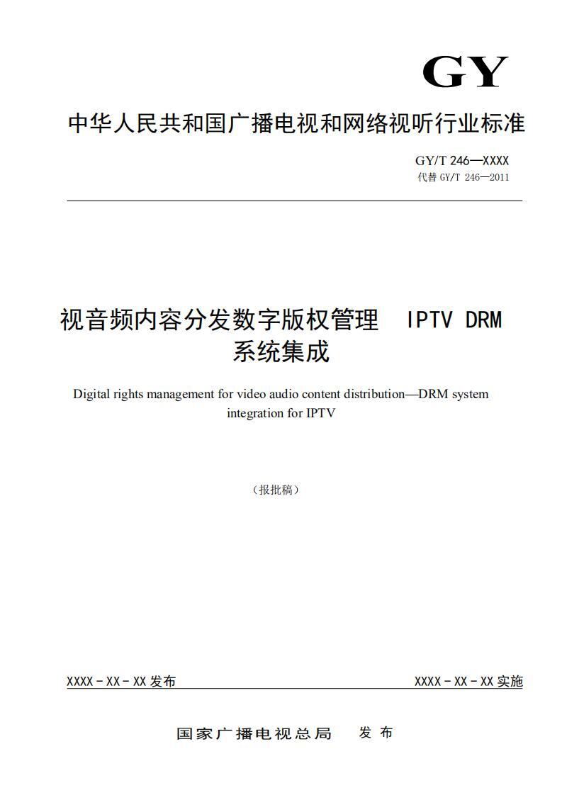 《视音频内容分发数字版权管理有线数字电视 DRM 系统集成(报批稿)》规定了有线数字电视DRM系统集成框架、内容加密、密钥管理、内容授权及终端集成等核心机制与接口协议。本标准适用于有线数字电视DRM系统集成部署与实施。有线数字电视DRM系统用于保护IP双向有线数字电视直播和点播内容版权,确保数字电视内容通过双向IP有线网络分发到终端播放、输出全流程的安全。