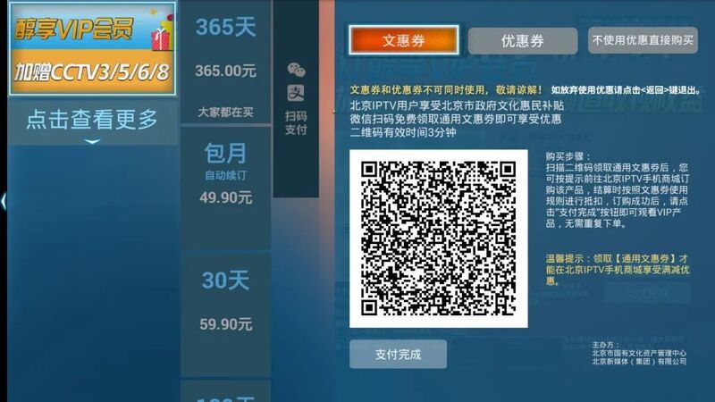 在家看北京IPTV也可以使用文惠券进行满减哦!