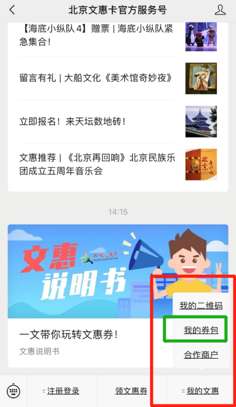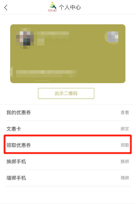 您还可以点击【北京文惠卡官方服务号】底部菜单的【领文惠券】,进入领券页面: