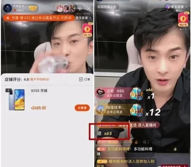 在上述和荣耀手机的争议中,辛巴就要求粉丝把手机都退掉,并警告粉丝,如果不退掉,他们将得不到300元的补贴。