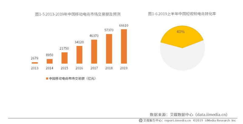 时至2019年上半年,中国短视频电商的整体转化率达到40%。艾媒分析师指出,短视频带货的转化率相对较高,也能进一步促进移动电商的发展,短视频电商开始成为有效的移动电商转化方式。
