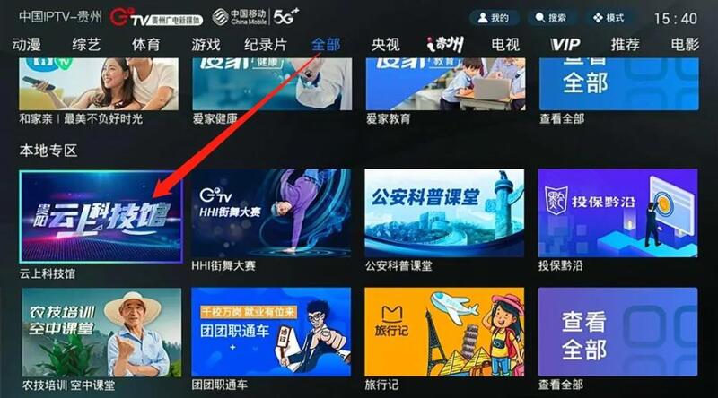 观看路径:G+TV移动版-移动“魔百和”机顶盒-全部分类-本地专区-《贵阳云上科技馆》专区