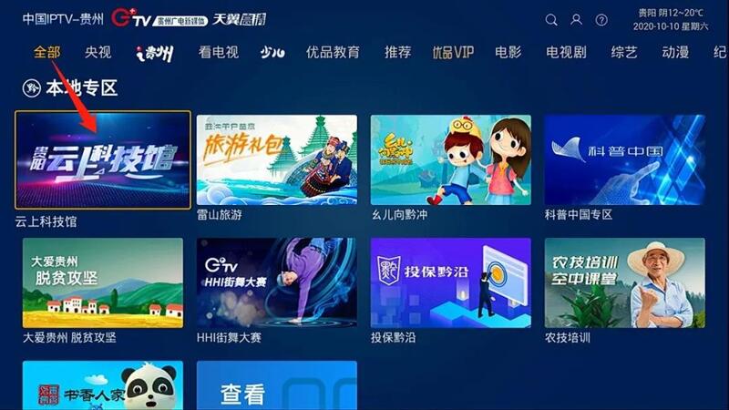 观看路径:G+TV联通版-联通“沃家影视”机顶盒-全部分类-本地专区-《贵阳云上科技馆》专区