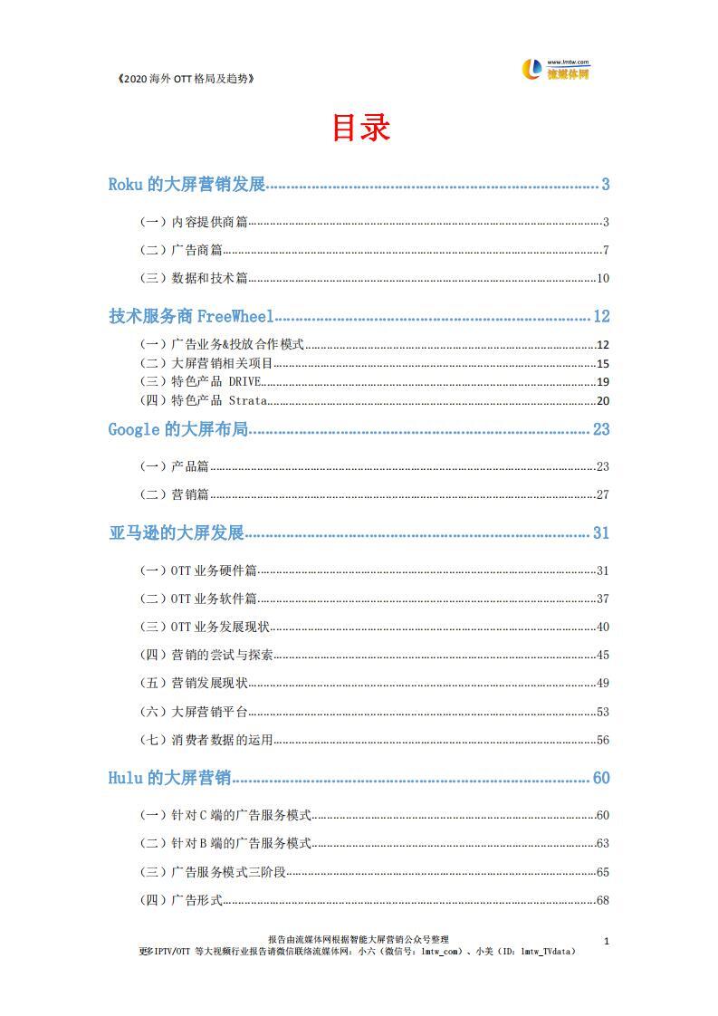 流媒体网根据智能大屏营销公众号整理并推出报告《从Roku、Google、Hulu等八家分析2020海外OTT格局及趋势》报告,聚焦海外各大流媒体平台、技术服务商,供业内学习、交流。本报告研究人员包括:刘晓、刘晓琦、张萌珊、李昕尧、马晓琳。