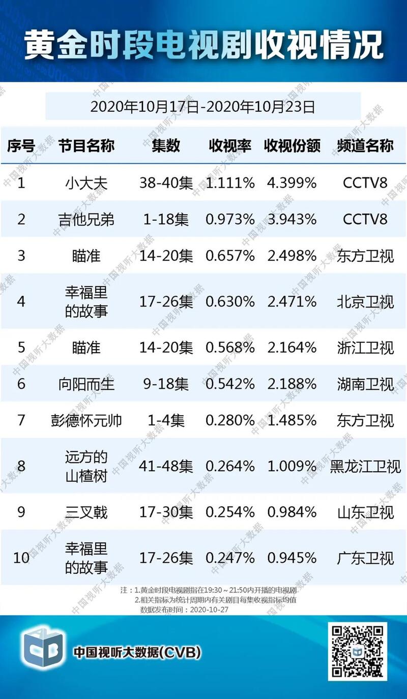 黄金时段电视剧收视情况【2020年10月17日-10月23日】