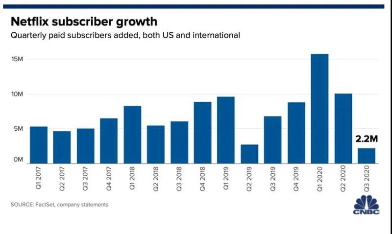 Netflix 订阅用户增长数量。图片来源:CNBC