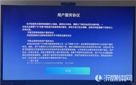 该产品的牌照商合作方为华数。首次开机时,用户需要同意相关服务协议。协议对智能语音功能以及摄像头功能等都做了详细告知,如协议中提到,当用户唤醒内置天猫精灵语音助手后,麦克风将处于启用状态,会自动接收并记录用户与智能设备终端进行交互过程中产生的语音会话、音频信息,可能会使用到用户的语音素材进行模型训练。用户可以在【系统设置语音设置】中关闭麦克风,但这也将导致无法获得智能语音服务。