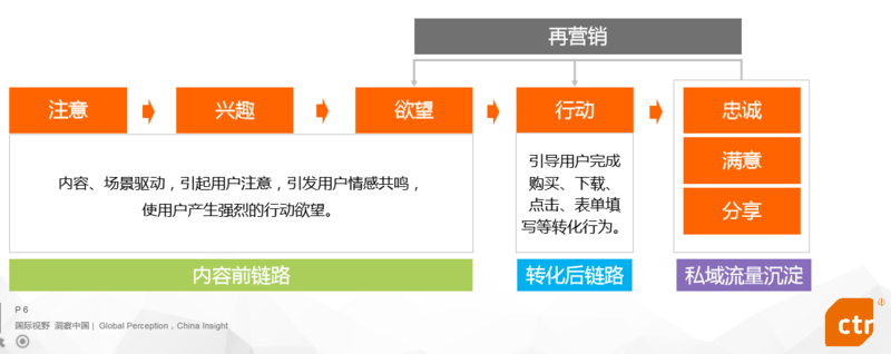 短视频全链路营销以内容为主要锚点,通过碎片化、娱乐化的内容快速吸引用户的注意力;尔后利用内容进行气氛渲染、情感带入,巧妙植入并传递营销信息,激发用户冲动性消费欲望,引导用户进入转化环节;最后,通过粉丝运营、社群管理等形式将有过相关观看或转化记录的精准用户进行沉淀,以便于后期的再营销。