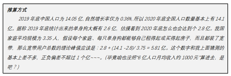 2019年12月三大运营商有线宽带用户首次出现负增长,我认为可以理解为宽带市场高速发展的势头基本已经结束。虽然截止2020年9月底,根据工信部统计三大运营商有线宽带接入用户总数达4.76亿户,同比增长5.8%,比上年末净增2682万户,但我认为满打满算国内宽带用户数也基本上能到5亿也就差不多了。