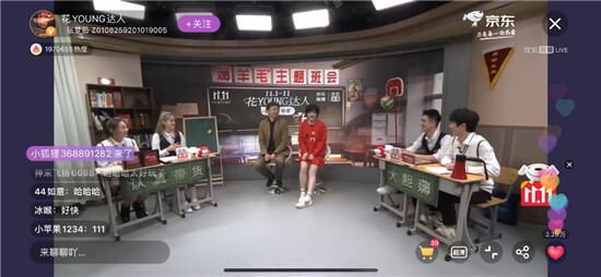 此次搜狐视频联合京东校园举办的“花YOUNG达人直播热爱季”,从11月1日至 11 月 11 日,连续 11 天,每天在直播间为同学们带来学生专享超低价格的好物。11日最后一天收官战也采用“薅羊毛主题班会”的全新玩法,延续搜狐视频直播带货好物分享不走寻常路,善于创新,打造价值直播内容的理念,将直播现场装饰成教室的场景,生动有趣的班会给学生们带来一场兼具娱乐性的精彩直播。