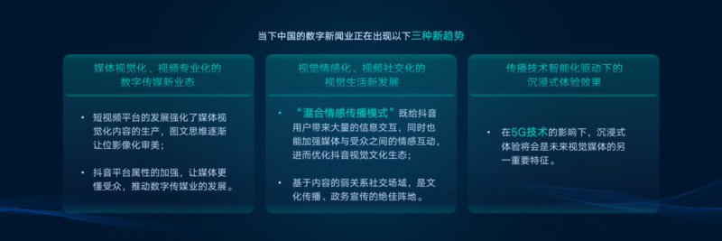 综上所述,媒体抖音号的探索和运营实践表明,当下中国的数字新闻业特别是平台主导的内容业态正在出现以下三种新趋势:一是媒体视觉化、视频专业化的数字传媒新业态。二是视觉情感化、视频社交化的视觉生活新发展。三是传播技术智能化驱动下的沉浸式体验效果。