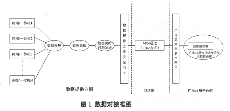 (3) 配置安全网关,通过IPsec VPN传输方式与广电总局大数据平台建立数据通道;