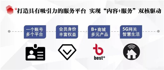 单纯依靠网络视听内容带来用户增长的逻辑,在移动互联网人口红利见顶的当下已不合时宜。在提供内容价值的基础上,打造具有吸引力的服务平台乃至生态体系,从而实现用户增长和留存,将会是BesTV+流媒体发展的另一个驱动轮。我们将通过“一个账号、多平台流通”,打通会员权益,打造“B+会员”服务体系和商业模式。