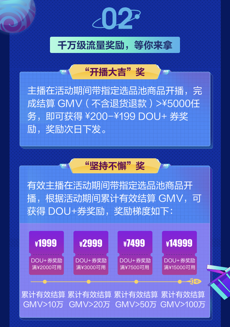 自4月以来,我们可以看到:今年以来,我们可以看到:抖音电商每一次的平台级活动,都有针对不同量级的主播开展的比拼活动,以保证平台上的不同主播都能在竞逐中成长。