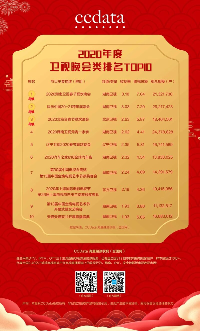 2020年最受欢迎卫视频道、电视剧、综艺及晚会类节目收视盘点