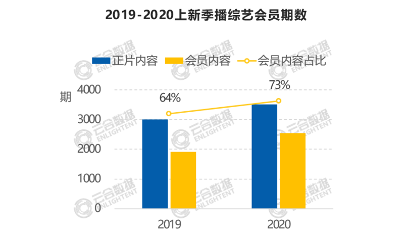 截至2020年底,上新季播综艺(含衍生)已更3511期,其中会员优享或专享期数占比73%,2019年这一比例为64%。