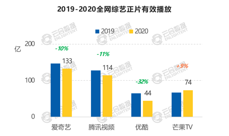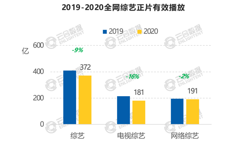 全网:2020全网综艺有效播放372亿,同比下滑9%;会员内容有效播放122亿,同比增长97%。