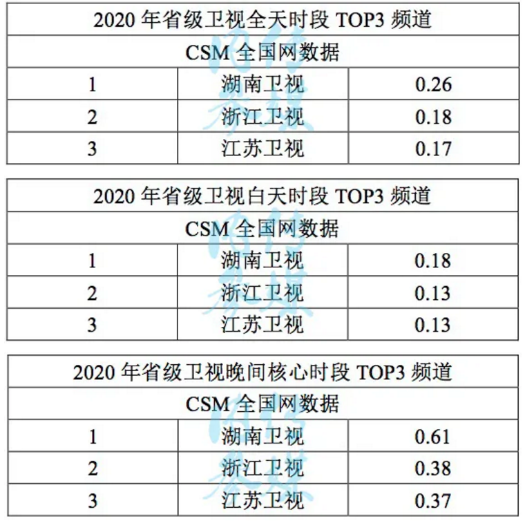 2020年省级卫视平均收视2.0以上的综艺节目14档,浙江卫视坐拥5档;浙江卫视黄金剧场2020年播出17部作品,CSM59收视全部破1;浙江卫视2020年新闻、时事节目播放量1098小时,排名第三,收视Top15中浙江卫视4档节目入选。