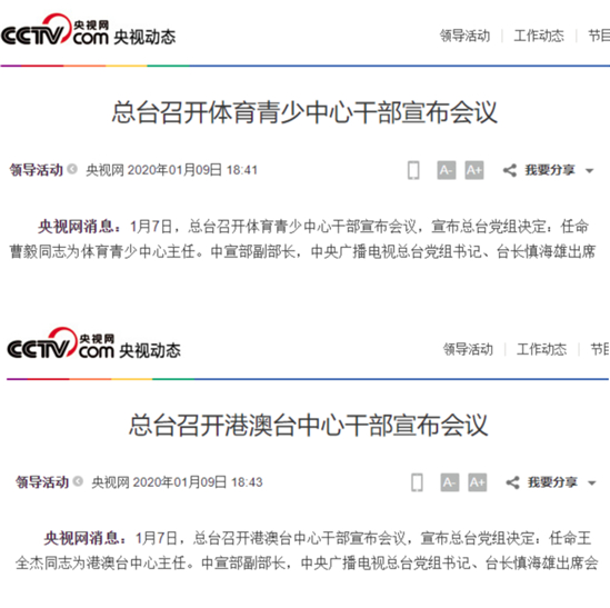 “融媒体”繁荣发展态势之下,既需要进行技术升级、平台拓展、内容创新,更需要对组织结构和管理体制作出调整和完善,总台在2020年初相继公布总台事业部、节目中心人事任免事项,包括确定财务局/体育青少中心/总编室/视听新媒体中心/港澳台中心等下设部门相关负责人,也标志着总台融合改革已进入实质性阶段。