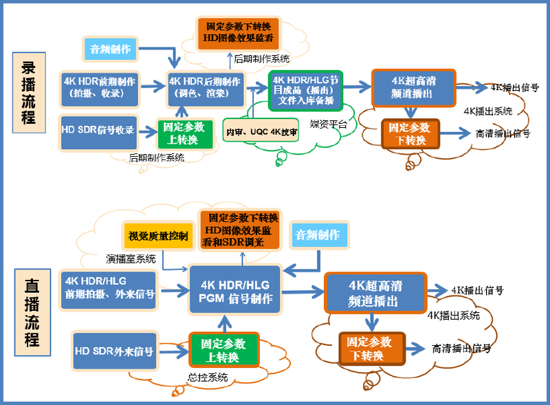 在应用实践创新的同时,总台还在技术研发、标准制定、平台建设上做努力。4月,总台起草了《中央广播电视总台4K超高清、高清电视节目同播技术规范(暂行)》,同月,由中央广播电视总台牵头的国家重点研发计划“宽带通信和新型网络”重点专项“4K超高清电视制播系统研制”项目获得科技部批准正式立项;7月,《中央广播电视总台5G媒体应用白皮书(2020版)》发布, “5G+4K/8K超高清制播示范平台”项目正式启动;8月,总台在4K/8K关键制播技术、5G环境关键制播技术、智能制播技术、区块链技术等方向设置首批11个开放项目合作申报启动;11月消息,总台计划2021年开播4K奥林匹克频道,启动建设4辆8K转播车和2套8K外场转播系统;12,总台与中国移动基于5G+4K/8K+AI技术展开深度合作,双方共同建设的5G超高清视音频传播中心也正式揭牌。(相关链接:中国电视大会直击|“主旨峰会”精华观点一览)