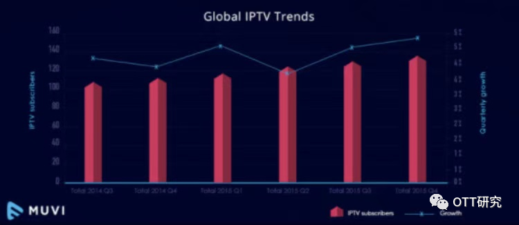 在过去的几年中,IPTV一直在持续增长。全球IPTV用户总数现已突破1.3亿大关。截至2015年底的过去24个月,净增600万订户。在此基础上,很多年轻人会将家中的IPTV使用方式专为OTT服务的使用方式。