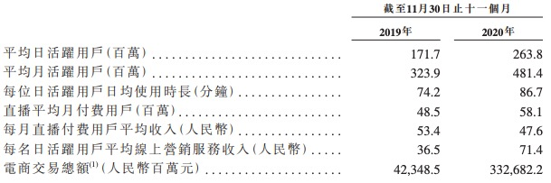 快手战斗状态开启后,快手用户增长速度与商业化进程在逐步提升。截至2020年6月30日,快手电商业务商品交易总额(GMV)达到人民币1096亿元,2020年前11个月快手电商GMV为3326亿元,此前媒体报道,快手电商2020年的GMV目标达到2500亿元。
