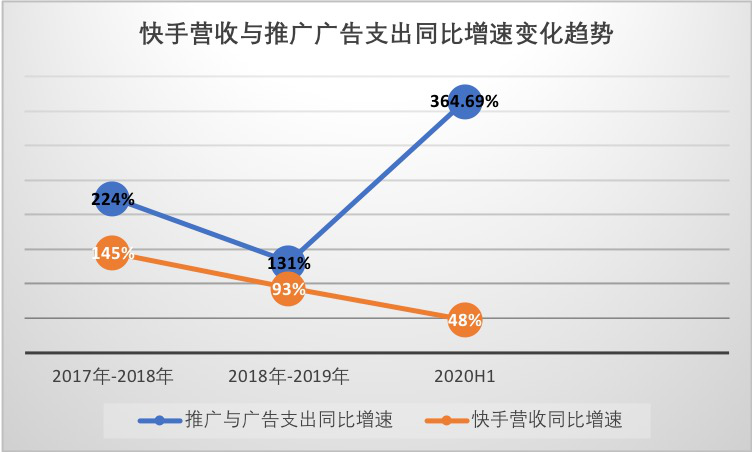 同时,快手的线上营销业务虽然收入正在增加,但是广告收入需要付出的成本也不低。数据显示,2017年-2019年快手的推广及广告成本分别为12.64亿元、40.77亿元、94.22亿元,到2020年前9个月,该项成本攀升至191.03亿元,同比增长超260%,占总收入的47%。