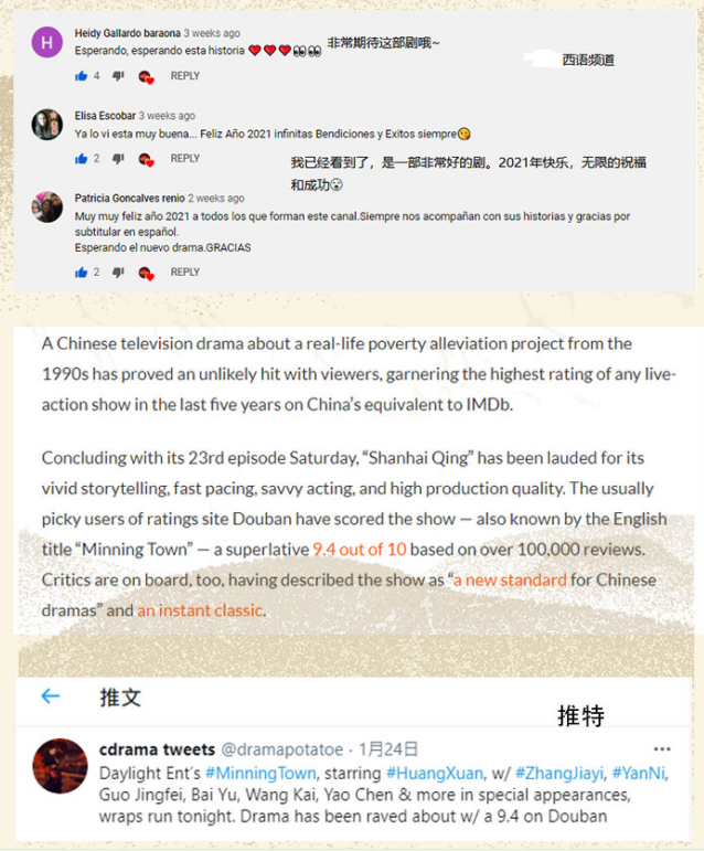 1月12日,《山海情》在国内多家卫视开播,于次日在海外平台上线。作为《山海情》在YouTube平台的独家发行方,未来电视译制了英语、印尼语、俄语、西语、葡语等多种版本,供不同国家和地区的观众观看,引发收视热潮。