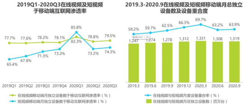 在线视频移动端和短视频渗透率双双上涨,同时保有较高重合度,体现当下用户视频内容消费个体兴趣的多样化,不再有单一的“主流人群”。