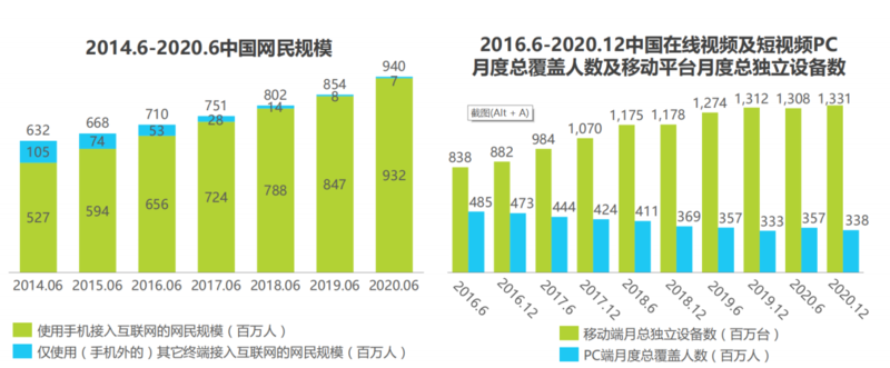 随着用户时间碎片化,移动网络的普及与增速降费,连同顺此势而生的内容形态及观看方式持续多元化,用户整体从PC端向手机端转移。