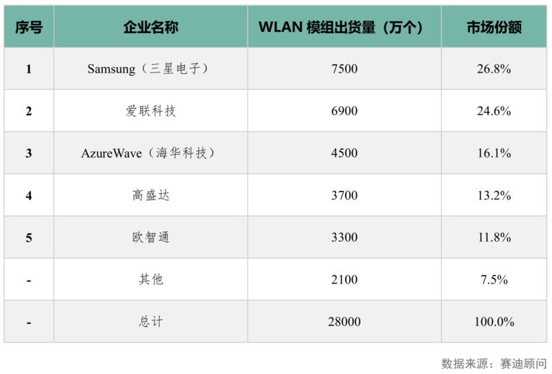 表 1 2020年中国智慧家庭WLAN模组市场竞争格局
