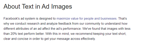 图注:Facebook帮助页面上有关广告图片中文字的规定(来源:Facebook)
