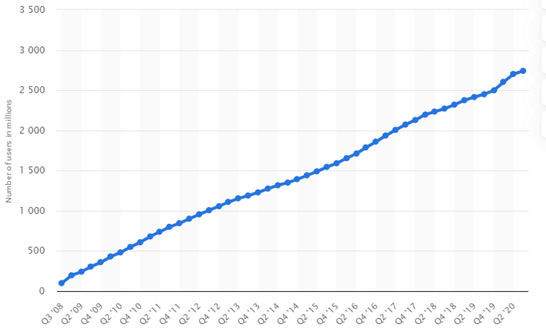 图注:Facebook月活用户增长曲线(来源:Statista)