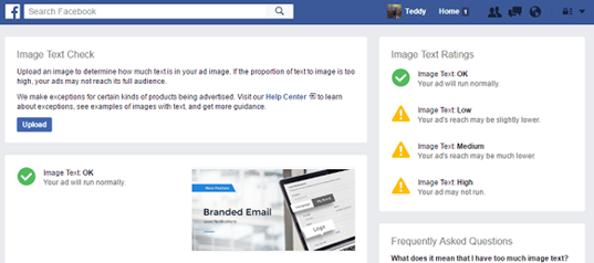 图注:Facebook检测工具,确保广告图片满足文字比例低于20%这一条件(来源:Instapage )