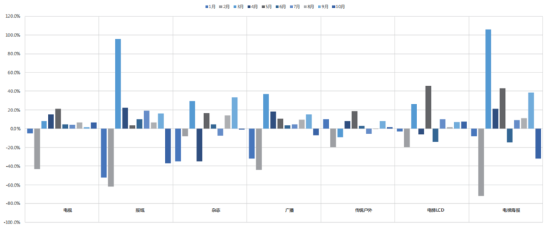 在广告市场从“低谷”逐步走向恢复的过程中,市场的投放结构也发生了改变。不同媒体广告的投放表现与具体行业的投放状况在大的市场环境影响下表现较为不同。
